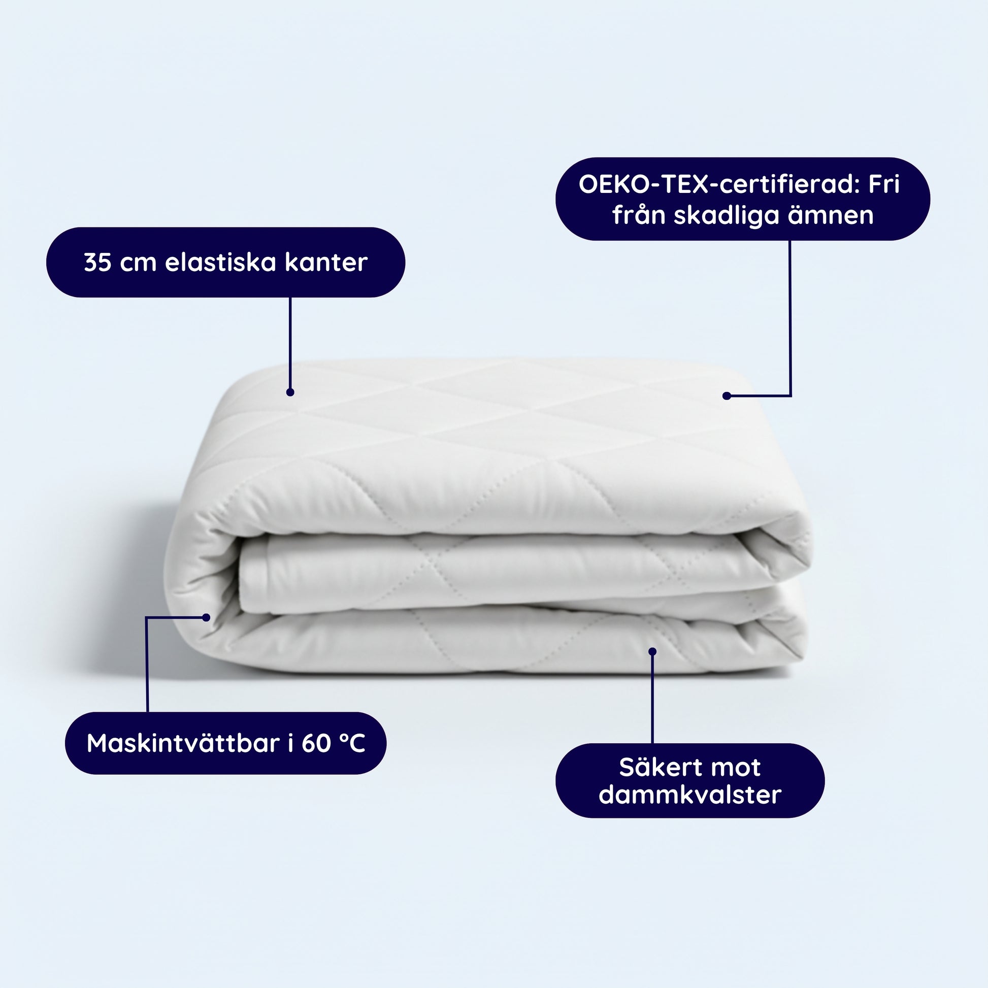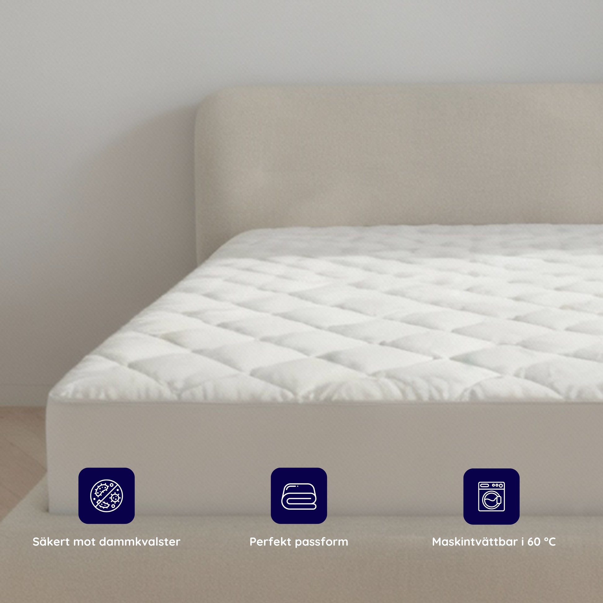 Det lette materiale beskytter effektivt mod fugt og pletter, samtidig med at luft kan cirkulere frit. Med 35 cm elastiske kanter passer NapProtect både til topmadrasser og almindelige madrasser, så den ligger stabilt og skaber en glat, komfortabel overflade at sove på.